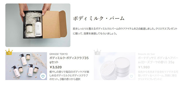 《クリスマスプレゼントに喜ばれるおすすめボディケアギフト15選》 掲載商品「ボディミルク」「ボディスクラブ」 >>掲載記事はコチラ |