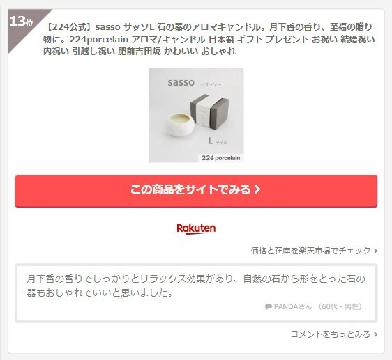 《一人暮らしを始める女友達の引っ越し祝いに!新生活を応援するプレゼント特集》 掲載商品「サシェ」「ファブリックミスト」 「ペーパーインセンス」 >>掲載記事はコチラ |