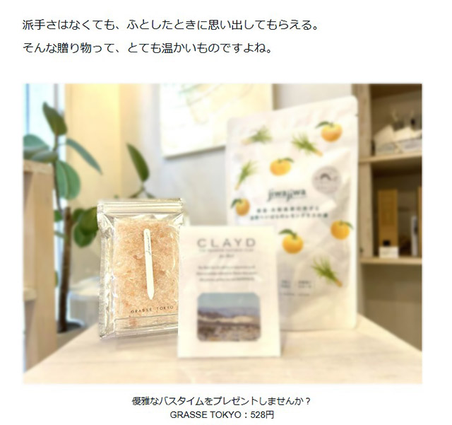 《バレンタインのお返し探しは麻布十番近辺で!ホワイトデーにおすすめギフトショップ3選!》 掲載商品「フレグランスソルト」 >>掲載記事はコチラ |