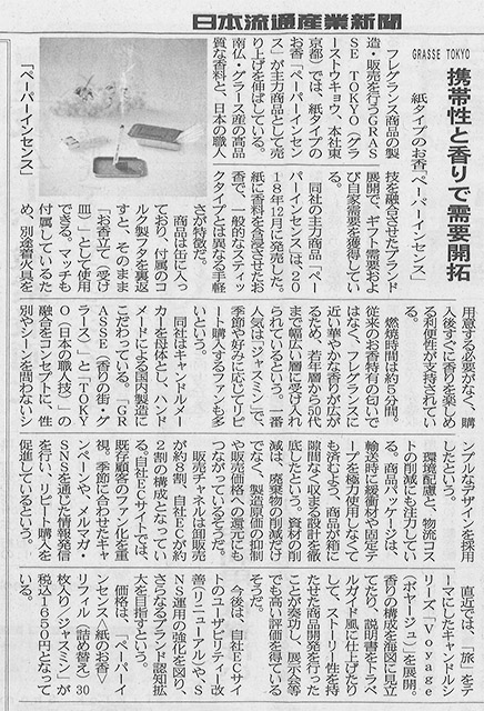 《携帯性と香りで需要開拓》 掲載商品「ペーパーインセンス」 |